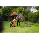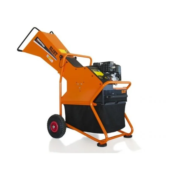 An den Häcksler befestigter Auffangbeutel, großer abnehmbarer Einfülltrichter.
