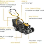 Le réglage de la hauteur de coupe est facile grâce aux deux leviers ergonomiques pour un réglage rapide et sans effort.