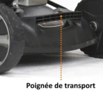 Vous apprécierez sa grande maniabilité avec ses grandes roues à roulement à billes ainsi que son réglage de la hauteur de coupe centralisé rapide et sans effort à 7 positions de 25 à 79 mm.