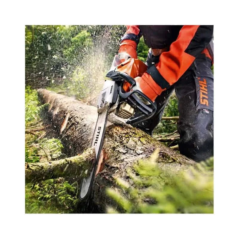Tronçonneuse thermique moderne et puissante de 3,5 kW avec moteur 2-MIX et M-Tronic. Régulation électronique du dosage de carburant et adaptation automatique aux conditions ambiantes. La tronçonneuse bénéficie toujours de la puissance optimale du moteur. Avec système de filtre HD2. Réduction jusqu’à 20 % de la consommation de carburant et jusqu’à 50 % des gaz d’échappement par rapport aux moteurs à deux temps conventionnels sans technologie 2-MIX. Très efficace pour toutes les tâches dans le bois semi-résistant.